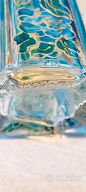 Realizzata invetro blucon una forma a base quadrata allungata e affusolata, simile a quella di un obelisco o di certi flaconi di liquori pregiati (come i prodotti Casoni).