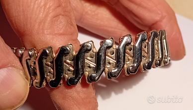 Bracciale a maglie espandibili o elastico, che si allarga per adattarsi al polso senza bisogno di una fibbia tradizionale.