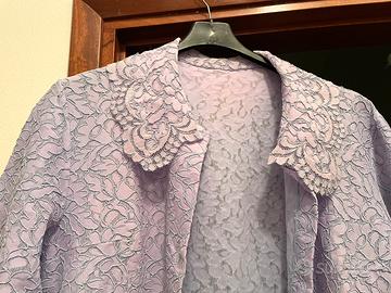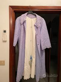 Vintage completo donna anni '80: vestaglia (si presta anche come soprabito estivo) color azzurro di pizzo macrame' interamente foderata con maglina in tinta - maniche tre quarti e colletto arrotondato e bottoni
