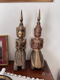 Sono stati acquistati negli anni 60 da mio padre, lo stesso quell'epoca viveva in Thailandia e nella zona dell' Indocina.I Teppanom (o Thepphanom) sono figure mitologiche thailandesi, angeli guardiani buddisti che si dice siano scesi sulla terra per celebrare l'Illuminazione di Buddha, diventando poi protettori di templi e artefatti, spesso raffigurati come coppie in preghiera (Añjali Mudrā) o danzanti, e si trovano comunemente in statue e decorazioni orientali