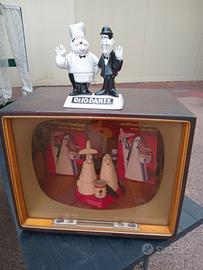 per amanti del passato , una creazione tutta vintage dei nostri caroselli anni 60/70 televisore anni 60 più statuette in ceramica lavorate a mano.rappresentante il carosello anni 60 con 2 targhe del caffe paulista in metallo . più 2 statuette in ceramica lavorate a mano 25cm circa stellio e olio e carmencita in amo, sempre in ceramiche, a voi il giudizio. per in da bgf 3331037039 federico da bg fate voi l'offerta non senzatetto?, graxie per inf 3331037039 federico