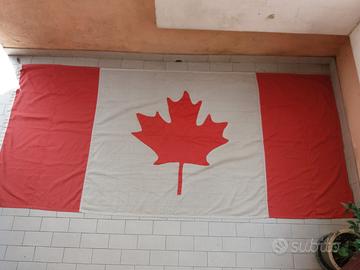 Grande bandiera vintage del Canada in stoffa pesante, cucita a mano, senza fori o difetti, con moschettone in ottone pesante e corda in canapa, la foglia d'acero e i singoli pannelli soni stati cuciti a doppia cucitura.