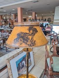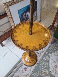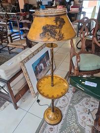 VISIONABILE DI PERSONA PRESSO IL MERCARTINO DI VIA BRUSNENGO 5B A TORINO Bellissima e particolare lampada da terra in latta con disegni sul paralume e decorazioni sul tavolino e sulla base. Misure Altezza 140 cm Altezza ripiano 65 cm Larghezza paralume 38 cm x 38 cm Larghezza tavolino 36 cm x 36 cm Condizioni ottime.