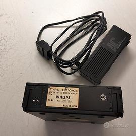 Vendo lettore CD portatile Philips CD-10 del 1985 vero oggetto da collezione dell'audio digitale e icona dell'ingegneria audio degli anni '80. Insieme a Sony segna l’inizio della miniaturizzazione della tecnologia CD. Robusto chassis in plastica e metallo, comandi fisici di tipo meccanico, display a segmenti LCD e un’interfaccia utente semplificata. Dotato di uscita cuffie stereo e uscita linea, il CD 10 può essere utilizzato sia in mobilità che come sorgente audio in un impianto domestico. Resa sonora fedele e naturale, in perfetto stile Philips di quegli anni. Completo di alimentatore di rete a 230V Philips AC10. Dimensioni 140x126x40 mm, peso 750 gr, confezione assente. L'apparecchio è funzionante, evidenzio la sostituzione della spina dell'alimentatore e che la leggera imbarcatura dello sportello superiore -visibile nella prima foto- è stata aggiustata. Sto liberando spazio, invito ad osservare altri miei annunci.