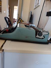 Macchina da scrivere vintage. Olivetti lettera 22 color turchese. Venduta con sua custodia originale in pelle rossa con maniglia in pelle nera. Perfettamente funzionante. Cerniere della custodia non ossidate.