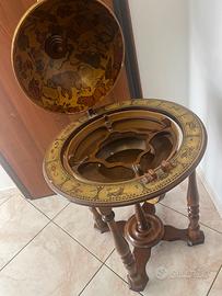 Mappamondo vintage bar anni 50 60 tutto in legno realizzato con storia di Cristoforo Colombo