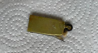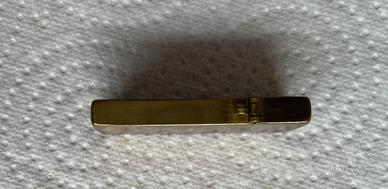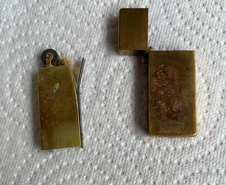 Sulla superficie esterna sono presenti alcune macchie leggere dovute al naturale ossido dell’ottone. L’oggetto non è rovinato: si tratta di ossidazione superficiale tipica degli accendini in ottone spazzolato.