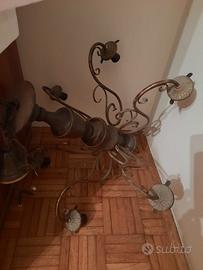 lampadario sala o camera da letto in ottone con campane in cristallo a euro 30