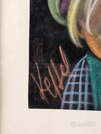Vendo coppia di quadri vintage anni ’60/’70 con bambini “big eyes”, tecnica pastello su cartoncino nero, firmati Keffel in basso a sinistra in entrambe le opere.
