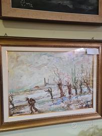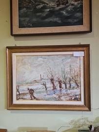 VISIONABILE DI PERSONA PRESSO IL MERCARTINO DI VIA BRUSNENGO 5B A TORINO Suggestivo dipinto olio su tela di un paesaggio firmato dall'artista Pietro Augusto Cassina. Misure Con cornice 92 cm x 72 cm Senza cornice 68 cm x 48 cm Condizioni ottime