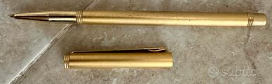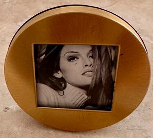 Ricordino vintage degli anni 70 composto da cornice portafoto in ottone e legno (diametro esterno 5,5 cm dimensioni foto 3 per 3 cm) e penna dorata in ottone (lunghezza 12,5 cm). Il tutto confezionato in scatola originale di cartone e sughero. Il set si trova in ottimo stato sarà accuratamente imballato e spedito.