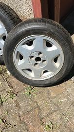 vendo 4 vecchi cerchi in lega 5 1/2 x J 14 Seat con gomme antineve/antighiaccio (4stagioni) 185-60-14 montate buone di cui 3 al 70%, 1 rotta perché urtato ferro tagliente. li avevo montati su y10 elefantino blu. prezzo cad. non spedisco