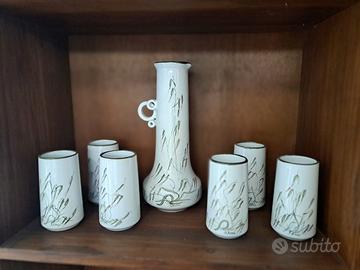 Vintage set ceramica da collezione. Composto da sette pezzi, una caraffa e sei bicchieri, come da foto. PEZZO RARO. In ottime condizioni.