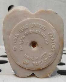 Danara - Vintage Snoopy & Woodstock Dog Dish Squeeze Toy - Anni '70/’80 Autentico Snoopy vintage prodotto da Danara e risalente alla fine degli anni ‘70/primissimi anni ’80. Un pezzo di storia dei Peanuts ed un bellissimo pezzo da collezione! Autenticità Garantita: Prodotto su licenza, come si vede dal marchio sotto la base: “© 1958, 1966 UNITED FEATURE SYNDICATE INC Danara INTERNATIONAL LTD.. Condizioni Eccellenti: Il pezzo è integro e non presenta rotture o crepe. Mostra i normali segni del tempo e dell’uso, che ne confermano l’autenticità e il vissuto. Ideale per l’esposizione o per arricchire una collezione. Nota sulla funzionalità: il fischietto interno emette un suono debole. Materiale & Aspetto: Realizzato in gomma/PVC. Il materiale che è rimasto morbido, ha acquisito una naturale patina vintage dovuta agli anni, che ne arricchisce il carattere. È in buonissime condizioni generali. Altezza circa 15 cm