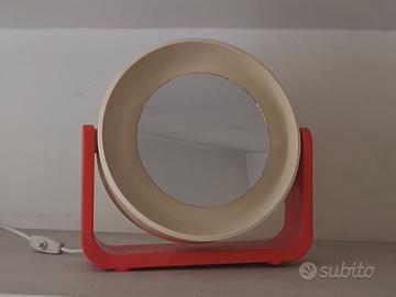 Iconico specchio da trucco originale Allibert anni ’60, autentico pezzo di design Space Age. Oggetto raro e ricercato per arredamento vintage e collezionismo. ✔️ Struttura rotante ✔️ Retroilluminazione originale ✔️ Doppio specchio: normale + ingranditore ✔️ Design d’epoca elegante e senza tempo 📏 Diametro: circa 25 x 25 cm 🖤 Condizioni ottime e perfettamente funzionante Lo specchio ingranditore presenta una lieve opacizzazione, volutamente mantenuta per conservare l’originalità del pezzo (può essere sostituito facilmente). Oggetto di grande fascino estetico, perfetto per ambienti vintage, bagno o vanity corner di design. Pezzo originale d’epoca, non riproduzione. €275