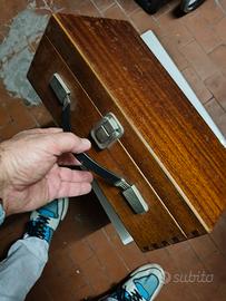 Questo strumento nell'immagine è un apparecchio analogico di misura utilizzato storicamente dai tecnici delle telecomunicazioni italiane, in particolare nel contesto della filodiffusione. Caratteristiche e Funzioni Tipologia: Si tratta di un misuratore di segnali elettrici (voltmetro/millivoltmetro analogico) che consente di verificare la presenza e la qualità del segnale sui circuiti di filodiffusione. Filodiffusione: Tecnologia diffusa soprattutto in Italia dal secondo dopoguerra, gestita da enti come la RAI e/o SIP/Telecom Italia, che trasmetteva programmi radiofonici tramite la rete telefonica cablata. Utilizzo: - Verifica delle linee di trasmissione audio. - Misura della tensione e del livello del segnale sui vari canali. - Controllo dello stato delle batterie interne e delle connessioni. - Selezione dei canali di trasmissione (come indicato dai pulsanti numerati ‘Canali’). Componenti visibili: - Misuratore analogico (scala in Volt e millivolt). - Vari pulsanti per selezione canali e funzioni. - Presa per cuffie o segnale esterno. - Altoparlante integrato per monitoraggio audio. - Indicatori di stato (LED o lampadina indicatrice). - Connettori e cavi di prova. Storia e diffusione Contesto d’uso: Questi strumenti erano forniti ai tecnici di manutenzione delle reti telefoniche e di trasmissione, soprattutto per la verifica delle linee di filodiffusione installate nelle abitazioni o negli uffici. Produzione: Tali strumenti erano spesso prodotti o marchiati da enti statali e fabbriche italiane specializzate in strumentazione elettrica. Obsolescenza: Dopo la decadenza della filodiffusione (iniziata negli anni '90 con l’avvento della radio FM e successivamente delle tecnologie digitali), questi strumenti sono diventati cimeli storici, conservati da collezionisti e musei: Riconoscimento visivo Il marchio circolare ("Strumentazione SIP – Ausilio Tecnici") indica una produzione destinata all’uso da parte dei tecnici della vecchia SIP (Società Itali