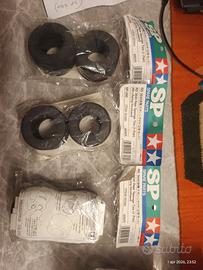 Gomme in spugna posteriori per formulini vintage Tamiya su telaio F101 e F102. Lista completa sul talloncino in foto. Buste nuove mai aperte sempre conservate al chiuso. 6 paia disponibili