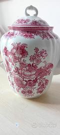 Teiera/caffetteria in porcellana serieFasan(fagiano) prodotta daVilleroy & Boch. Questo modello, caratterizzato da un raffinato decoro floreale e motivi di uccelli in stile asiatico realizzati con la tecnica della stampa a riporto (transferware), è stato prodotto in diverse varianti di colore, tra cui il rosso/rosa visibile nella foto.