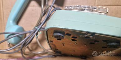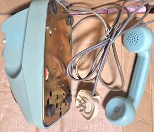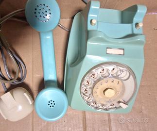 Vintage telefono a disco azzurro, colore originale non riverniciato, anni 60,vendo in modalità visto e piaciuto come da foto, non provato funzionamentoquindi lo vendo come non testato non funzionante, presenti alcune righe e opacità su plastiche dovute all esposizione alla luce, presenti due fenditure,graffi come si vede nelle foto,il disco in plastica è opacizzato, il telefono è stato in esposizione in un salone per molto tempo non collegato alla linea telefonica,colore difficile da reperire.....