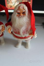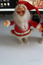 In questa inserzione propongo un bambolotto di babbo natale, fattura anni 70/80 con viso in gomma e occhi azzurri, ha le braccia con anima in metallo e quindi posizionabili nella posa che più piace, alto circa 20 cm. Fattura orientale, china o japan. Condizioni come da foto, visto e piaciuto. Ne ho disponibili due identitici in tutto e per tutto. Potete quindi scegliere se acquistarne uno solo, o tutti e due.