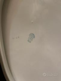 Linee eleganti e pulite, smalto color avorio con raffinato bordo blu cobalto e sottile filetto dorato, tipico delle produzioni mitteleuropee di metà Novecento.