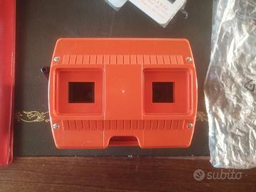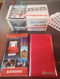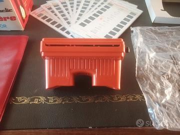 visore stereoscopico vintage anni 60/70, marca Stéréofilms Bruguière, modello Junior. Completo di scatola con relativo supporto e cellophane, istruzioni/manuale illustrativo, 10 schede stereoscopiche rappresentanti Lourdes, porta schede originale. Tutto perfetto, mai usato. Solo la scatola presenta qualche segno di "usura" data dall età