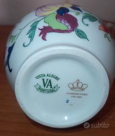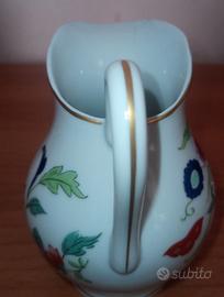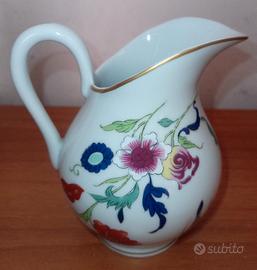 Lattiera in porcellana Vista Alegre Portogallo motivo a fiori e bordo dorato Altezza 11 cm base 4 cm circonferenza massima 25 cm