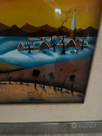 Paesaggio olio sottovetro, firmato in basso a destra, 50x40 entro cornice
