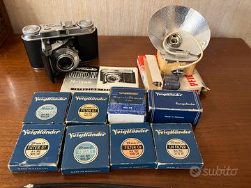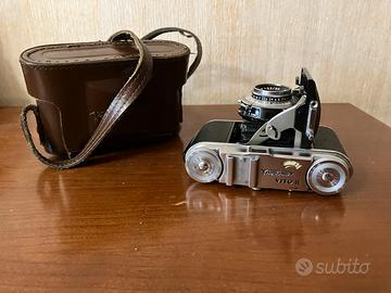 Voigtländer Vito II, fotocamera a pellicola da 35 mm pieghevole, compatta e portatile, con scatto bloccato.