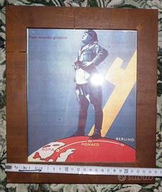 volantino di propaganda fascista, originale conservato in ottime condizione per il tipo di carta usata in quel periodo, con cornice dell'epoca, si vede dal fermo appendi quadro che è fatto a mano.