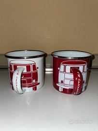 VOLKSWAGEN T1 BUS 2 TAZZE SMALTATE BIANCA / ROSSA DELLA BRISA GERMANY NUOVE COME DA FOTO. DIMENSIONI : DIAMETRO CM 8,5 X H 8