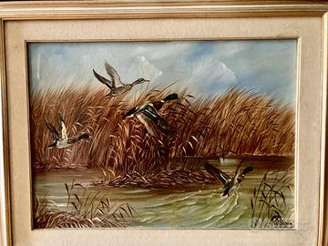 Vendo Opera di Riccardo ROCCA del 1976 intitolata “Volo di Germani”. Tecnica: Olio su tela. Misure: 50x70.