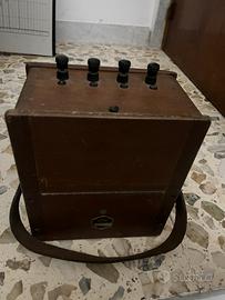 voltmetro analogico C.G.S. Mod. HW18T vintage in una cassa di legno. È un oggetto da collezione interessante per appassionati di strumenti scientifici storici.
