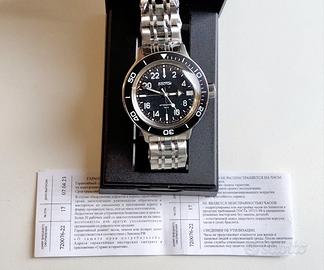 ANNO DI PRODUZIONE 2025 Caratteristiche: orologio ad avvio manuale e a funzionamento automatico cassa e cinturino in acciaio inossidabile impermeabilità: 20 ATM (200 m) calendario numero di rubini: 32 meccanismo: 2431 vetro organico indici e lancette fluorescenti Riserva di carica 31 ore Precisione a temperatura 20 ± 5 ° C -20/+60 secondi Orologio nuovo, mai indossato, con confezione, documenti e pellicole originali, acquistato direttamente alla fabbrica Vostok, con garanzia del produttore. Pagamento contanti, bonifico, paypal. Consegna a mano zona Milano o spedizione corriere SDA in tutta Italia. Accetto prenotazioni di modelli non nei miei annunci. Non interessano scambi