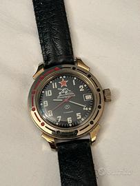 Vendo Vostok Komandirskie originale, iconico orologio meccanico sovietico con quadrante militare raffigurante carro armato e stella rossa.
