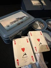con all’interno scatola di latta con carte da gioco