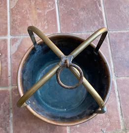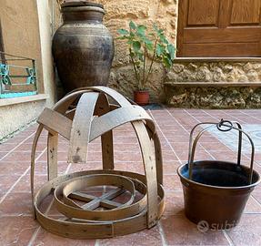 La mancanza che si vede nel vriutulu di legno non è un difetto ma è per inserire lo scaldino all'interno e misura cm. 32 d'altezza x 37 di diametro.