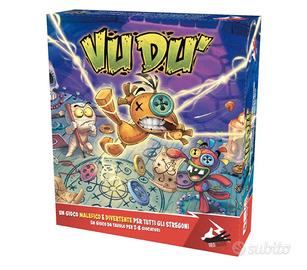 Preparatevi a una gara di magia e risate! Tirate i dadi, lanciate gli incantesimi, obbligate i vostri avversari ad assumere posizioni impossibili e, quando saranno con la testa sul tavolo e le braccia incrociate… …Scatenate il divertimento! In Vudu’ vestirete i panni di stregoni tanto perfidi quanto strampalati! A colpi di incantesimi cercherete di rendere la vita impossibile ai vostri avversari: dovranno giocare su un piede solo, sibilando ogni parola, con le braccia incrociate e ululando prima di ogni tiro di dado. Se non resisteranno alle penitenze, voi farete punti… e il divertimento è assicurato!