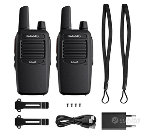 Vendo Walkie talkie compatti 2 pz , radio portatile a batteria 1200mah ricaricabili. Nuovo con scatola e accessori. 2 walkie talkie con voce anche in italiano , ricaricabili con usbc. Batteria da 1200mah. Vox , ctcss/dcs. Squelch regolabile. Comandi anche in italiano guida vocale localizzata anche in italia. Offrono un funzionamento con voce chiara anche all'aperto . Compatti e portatili misurano 135 x 54 x 27 mm e pesano 150 grammi. Colore nero . Clip incluse per cintura , trasportabili in tasca , ideale per escursioni, gite , ciclismo, corsa , lavoro per professionisti che devono comunicare a distanza magari in cantieri , discoteche , guardie, locali o altro. Antenna corta e compatta . La batteria da 1200mah offre fino a 48 ore di autonomia. Si ricaricano tramite cavo usbc incluso insieme all'alimentatore . 16 canali pmr completamente compatibili con canali pmr446. Sullo stesso canale e tono. Codici privacy ctss/dcs e Squelch regolabile. Programmabili cin diverse funzioni. Manuale incluso .