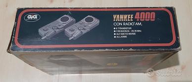 Da fondo di magazzino propongo Walkie Talkie YANKEE 4000 della GiG, originali vintage anni 70/80, nuovi e completi di tutto (anche le batterie 9v dell'epoca in dotazione), la scatola presenta qualche segno del tempo, leggere imperfezioni e qualche decolorazione come da foto, ma ricetrasmittenti e manuale sono perfetti.