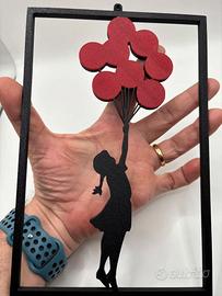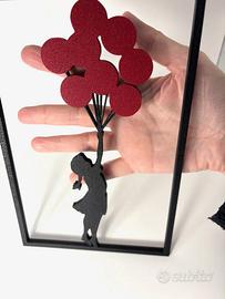 Wall Art Banksy Bambina con Palloncini 22x15cm Stampa 3D Bicolore Quadro Moderno. Wall art decorativa ispirata allo stile Banksy, raffigurante una bambina con palloncini. Realizzata tramite stampa 3D bicolore, questa decorazione è perfetta per ambienti moderni, minimal e contemporanei. Ideale per arredare soggiorno, camera da letto o ufficio, oppure come regalo originale. Caratteristiche prodotto: Stampa 3D Design bicolore (nero + rosso) Dimensioni: 22 x 15 cm Facile da appendere Materiale leggero e resistente Perfetta per chi ama l’arte urbana e il design moderno.