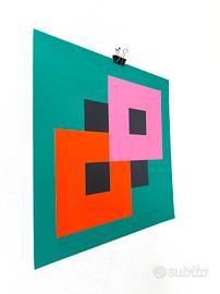 Autore: Walter Ballmer Titolo: Senza titolo Tecnica: Serigrafia e collage su carta Editore: — Firma: Firma a matita in basso a destra Datazione: 1975 Stato di conservazione: Buono stato generale; lievi segni del tempo superficiali Misure: 50 x 50 cm ca. Tiratura: 50/90 Descrizione dell’opera: Composizione geometrica costruita attraverso la sovrapposizione di campiture quadrate e rettangolari dai colori saturi e contrastanti – verde, arancio, rosa e nero – disposte secondo un equilibrio rigoroso ma dinamico. L’interazione tra pieni e vuoti, insieme alla modularità delle forme, genera un ritmo visivo essenziale e calibrato, tipico della grafica modernista. L’opera riflette una chiara matrice progettuale, in cui il linguaggio dell’arte si fonde con quello del design, dando vita a una struttura visiva immediata, potente e altamente comunicativa. Note sull’artista / Monografia: Walter Ballmer (Liestal, 1923 – Milano, 2011) è stato un importante graphic designer svizzero attivo in Italia. Formatosi alla Kunstgewerbeschule di Basilea, si trasferì a Milano nel 1947 collaborando con lo Studio Boggeri, centro fondamentale della grafica moderna. Dal 1956 lavorò per Olivetti, contribuendo in modo decisivo allo sviluppo dell’immagine coordinata dell’azienda e realizzando, nel 1970, il celebre marchio. Successivamente operò come libero professionista collaborando con importanti realtà industriali e culturali. La sua ricerca si distingue per il rigore compositivo, l’uso del colore e l’equilibrio tra funzione comunicativa e qualità estetica, rendendolo una figura centrale nella grafica internazionale del secondo Novecento.