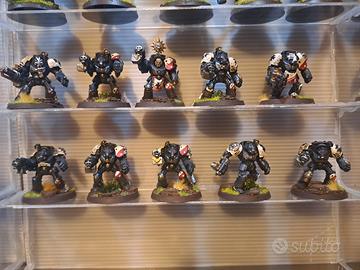 vendo esercito black templars, tutti pezzi originali in plastica, dipinti ad ottimo livello. lista: chaplain+jetpack emperors champion techmarine+4 servitors apothecary 10 assault terminators 10 terminators 5 sword brethren 2x5 crusader squad 3x dreadnought drop pod stormtalon landspeeder missili a disposizione per altre foto