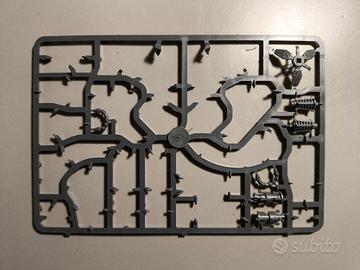 Come da foto Cacciatore del Triarcato Necrons, iniziato il montaggio con colla cianoacrilata. Fondo e alcuni dettagli dipinti sul corpo centrale il resto è grezzo.