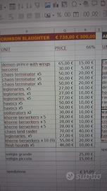 esercito chaos space marines legione Crimson Slaughter, dipinto ad ottimo livello, con 3 pezzi livello pro. i pezzi sono tutti originali, alcuni riconvertiti, altri von lievi kitbash,molti in armatura heresy per aderenza alla lore. solo plastica o metallo, nessuna stampa 3d LA LISTA È TRA LE FOTO. l esercito viene spedito in 2 valige decorate a tema Crimson Slaughter organizzate su misura per questo esercito. le valigie sono grandi per cui la spedizione viene gestita direttamente da me. nb:le basette possono essere state cambiate per esposizione o per cambio di regole, non è detto che siano originali sono a disposizione per foto e dettagli.