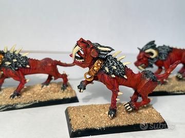5 miniature originali in metallo, old model, flesh hounds di Khorne.