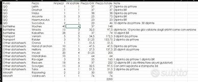 Vendo armata drukhari completa di tutti i pezzi che uno possa desiderare e volere. Alcuni pezzi sono dipinti Battle ready altri da pittore altri non dipinti e ancora con le armi da montare per permettere il massimo della flessibilità. Wracks 5 originali e 10 convertite dai namarty con pezzi di wracks.