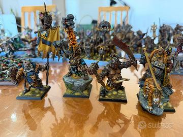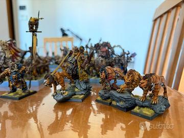 Ciao a tutti propongo splendida armata come da foto. Vendo anche a singoli modelli. La lista è la seguente 1x Tiranno METALLO 80 € 1x Ogre Executioner 80 € 1x Hunter (modello GW di Beastgrave) 100€ 1x Bsb METALLO 100€ 1x Firebelly 80€ 2x Butcher 100€ 6 X Ogri Toro tema Fuoco 115€ ( di tre in tre a 20€ a modello se non presi tutti insieme ) 6 X Ogri toro senza gruppo comando 115€ ( di tre in tre a 20€ a modello se non presi tutti insieme ) 14x Ruttapiombo ( 6 a tema pirata) 280 ( di tre in tre a 20€ a modello se non presi tutti) 18x Stomaci 300 3 x Meneaters METALLO 150€ ( ninja, martello a doppia mano , arma a due mani ) 1 x Meneaters Finecast 40€ ( pirata con arma a due mani spada e ascia) 5 Maniater tema pirata 200€ 6 Maneaters con pistole tema pirata 150€ 12x Tusker 240€ ( se presi di 4 in quattro 25€ a modello) 2x Cannoni 150€ ( modello singolo 80€ a pezzo) 13x Tigri (10 sono lupi del 40k) 170€ 4x Yethi (non GW, molto belli) 80€ 1x Thundertusk 100€ 50x Gnoblar 100€ Ho inserito prezzi per singolo modello e per unità. Chi fosse interessato puó scrivermi. Si applicherà sconto a chi acquisterà più unità. Ho riscritto la lista e modificato il tutto ora è più comprensibile e ho indicato i modelli in metallo. Nell’armata ci sono solo 5 modelli in metallo ( Tiranno , BSB e i tre maneaters) come indicato vicino ad ognuno . Per info non esitate a chiedere.