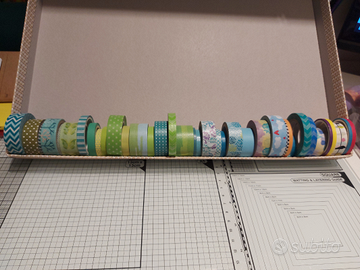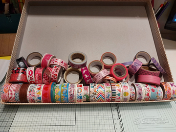 Oltre 125 washi tape! Alcuni nuovi, altri più o meno usati. Vendo singolarmente da 1€ l'uno o in blocco a 150€. Vedere altre mie inserzioni per altri modelli e/o altro materiale scrap.