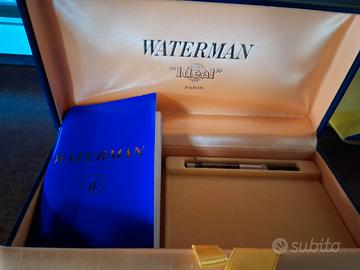 Stilografica Waterman Expert in resina bordeaux con finiture dorate, dotata di pennino in oro 18 kt. Condizioni eccellenti, completa di scatola originale Waterman. Scrittura fluida e precisa, ideale per uso quotidiano o collezione. Modello ormai non più in produzione con pennino in oro, molto ricercato.